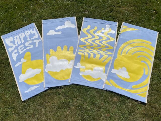 Canvas, housepaint, clearcoat, and thread.